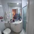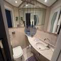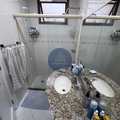 Banheiros das suítes com armários planejados e box blindex
