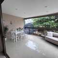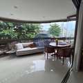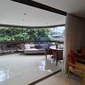 Varandão frontal fechado com cortina de vidro, voltado para o sol da manhã, perfeito para relaxar e receber