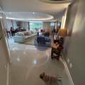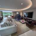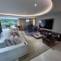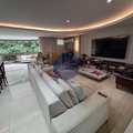 Sala espaçosa em 3 ambientes, com projeto de iluminação e acesso direto à varanda no mesmo nível