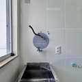 Cozinha azulejada com área de serviço integrada