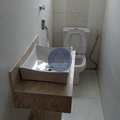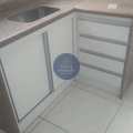 A cozinha tem armário sob a pia e sob o tanque também