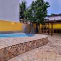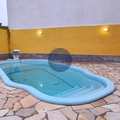 Área de lazer composta de piscina com 15.000 litros, churrasqueira, forno e fogão a lenha, lavabo e amplo espaço
